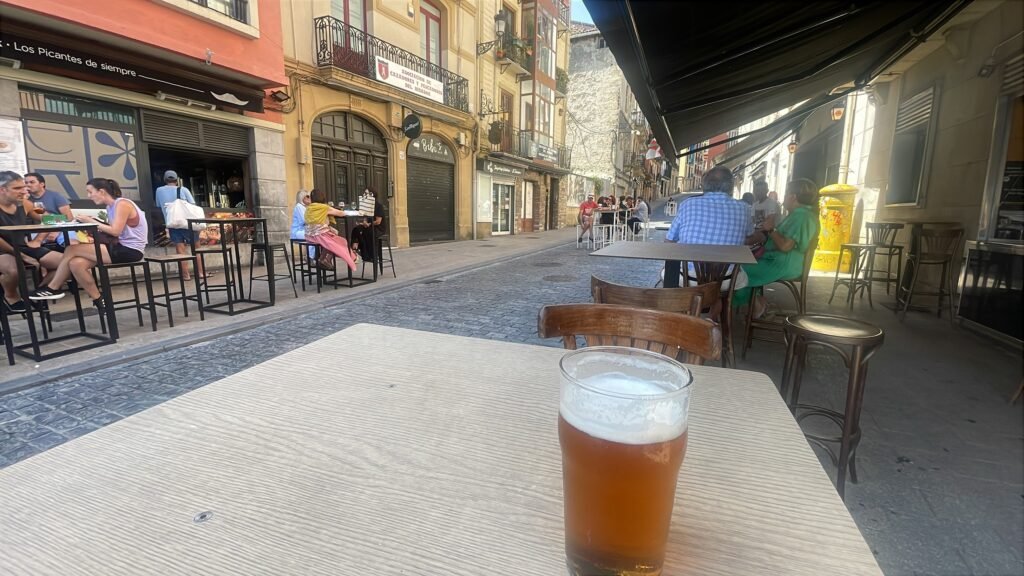 Pintoresco, prolijo, simpático… y encima, la gente a las 3 de la tarde ya está tomando cerveza como si fueran las fiestas del pueblo todos los días. Cada esquina un bar, cada bar un pincho, cada pincho una excusa para vivir. Me senté, me pedí una caña, y me dije: