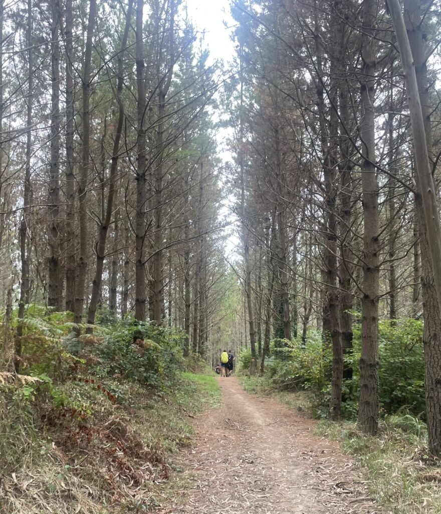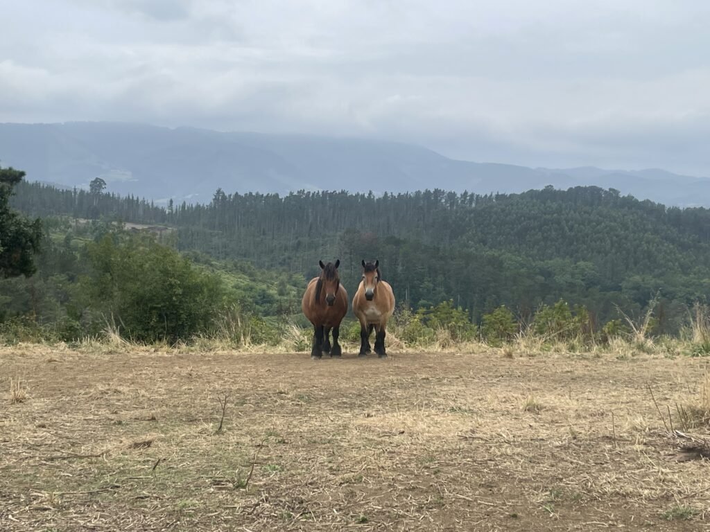 Vas por bosques espesos donde huele a tierra mojada, cruzás prados con ovejas que te miran como diciendo “pero mirá esta… a dónde irá tan cargada”, y caseríos vascos que parecen de revista: paredes blancas, maderas oscuras, balcones llenos de flores. En algunos tramos me sentía en una peli medieval, esperando que me cruce un monje con capa o, mínimo, un elfo.
