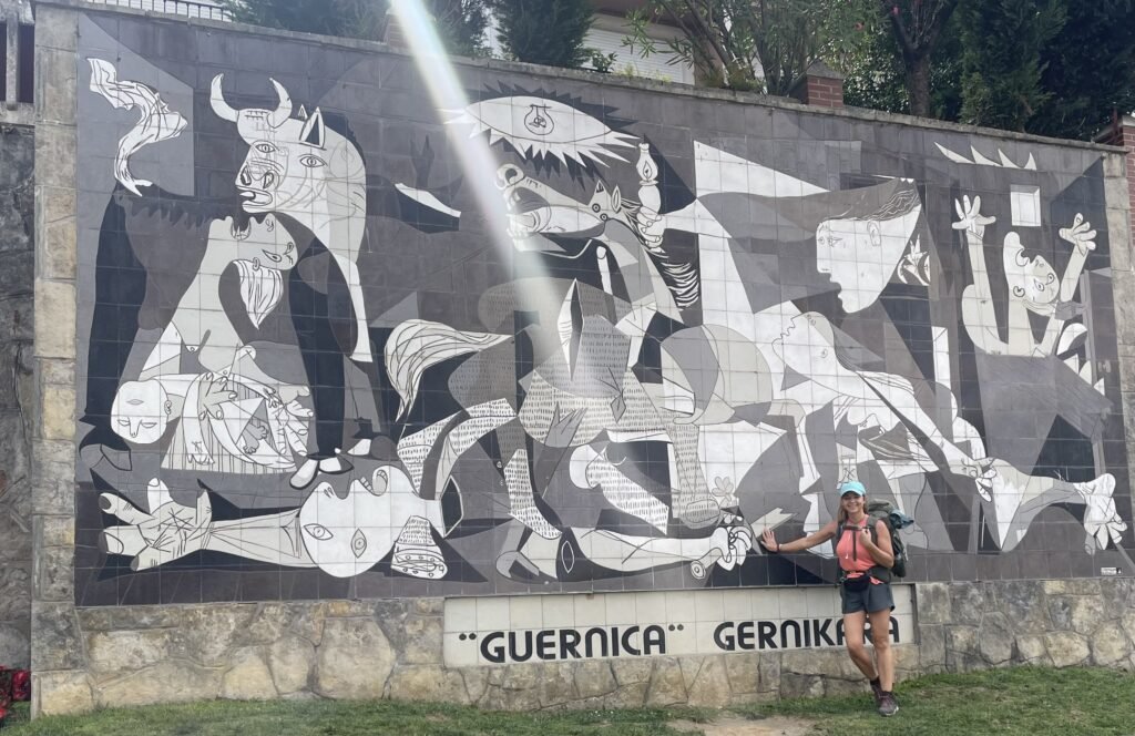 Acá está el famoso Árbol de Gernika, símbolo de las libertades vascas, y la Casa de Juntas. Y la réplica del “Guernica” de Picasso, que es ese cuadro en blanco y negro lleno de figuras deformadas, gritos y caos. No tiene color porque no había alegría que pintar. Lo ves acá, después de caminar por estas calles, y pega distinto.