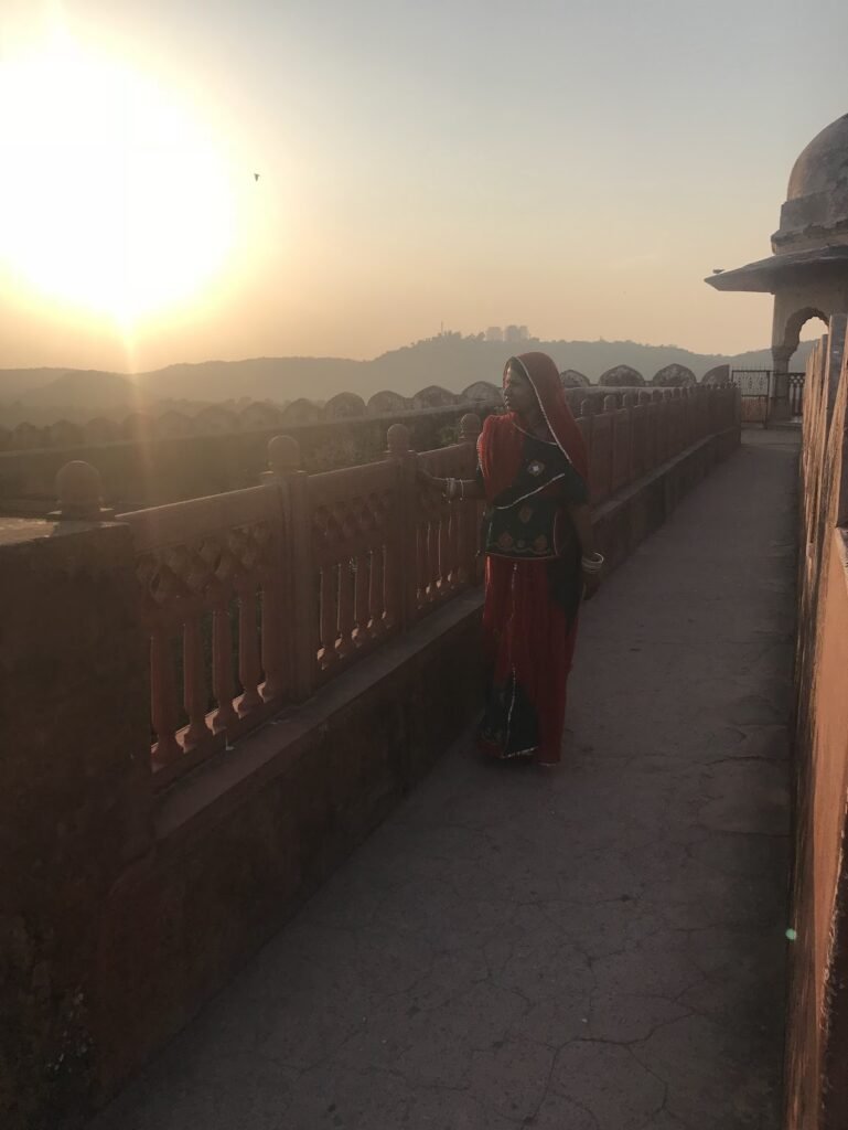 Me tomé mi tiempo para recorrer cada rincón del lugar. Subí por unas escalinatas altísimas (que no sé cómo sobrevivieron a mi cansancio), y desde arriba, la vista es simplemente alucinante. Tenés todo el patio a tus pies, y podés ver cómo se mezcla lo sagrado con lo cotidiano: monjes, turistas, niños, cámaras, risas, oraciones. Todo junto, todo al mismo tiempo. Y desde ahí arriba se ve Delhi en su máxima expresión: caótica, viva, difusa por la contaminación, pero con una energía que te hipnotiza.