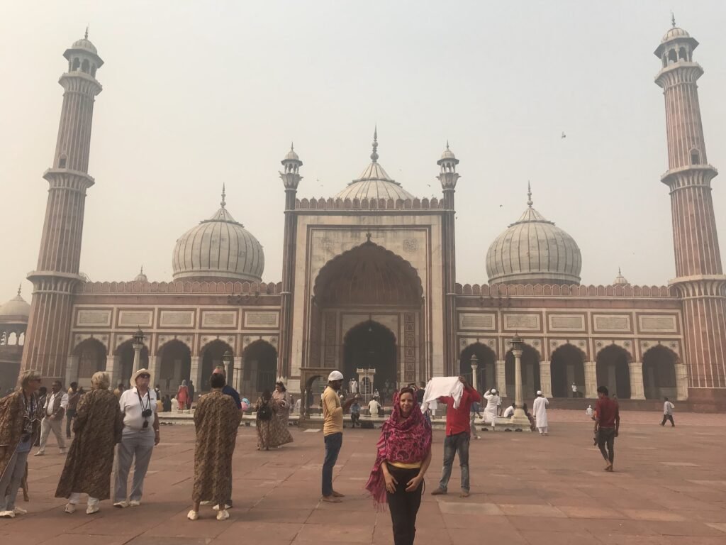 Hoy fui a visitar uno de los lugares más impactantes de Delhi: y si tenés planes de venir a India, te lo digo así nomás: ¡agendala ya! este es mi tour Jama Masjid, no es solo una mezquita, es una experiencia religiosa, arquitectónica, visual y emocional que te atraviesa como el bocinazo de un tuk-tuk a las 7 de la mañana.