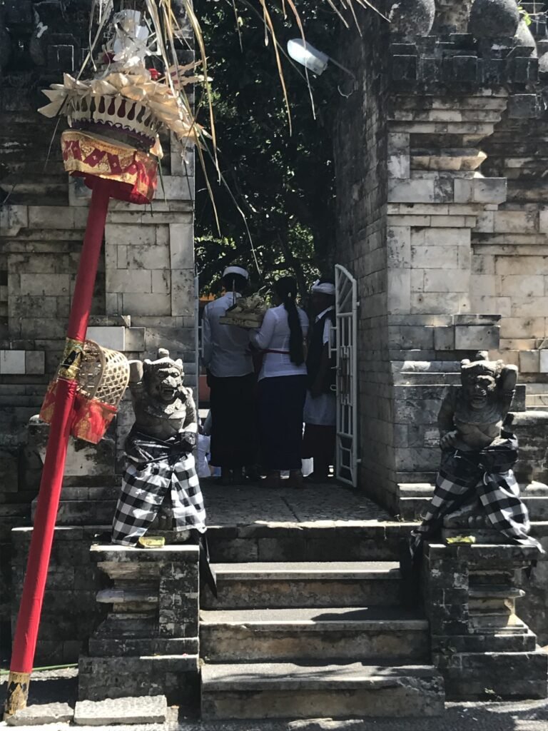 Pero fuera de eso, el lugar es impresionante. El templo en sí está dedicado a Rudra, una de las manifestaciones del dios hindú Shiva. Es uno de los seis templos más importantes de Bali y está ubicado justo al borde del acantilado, a unos 70 metros sobre el mar.