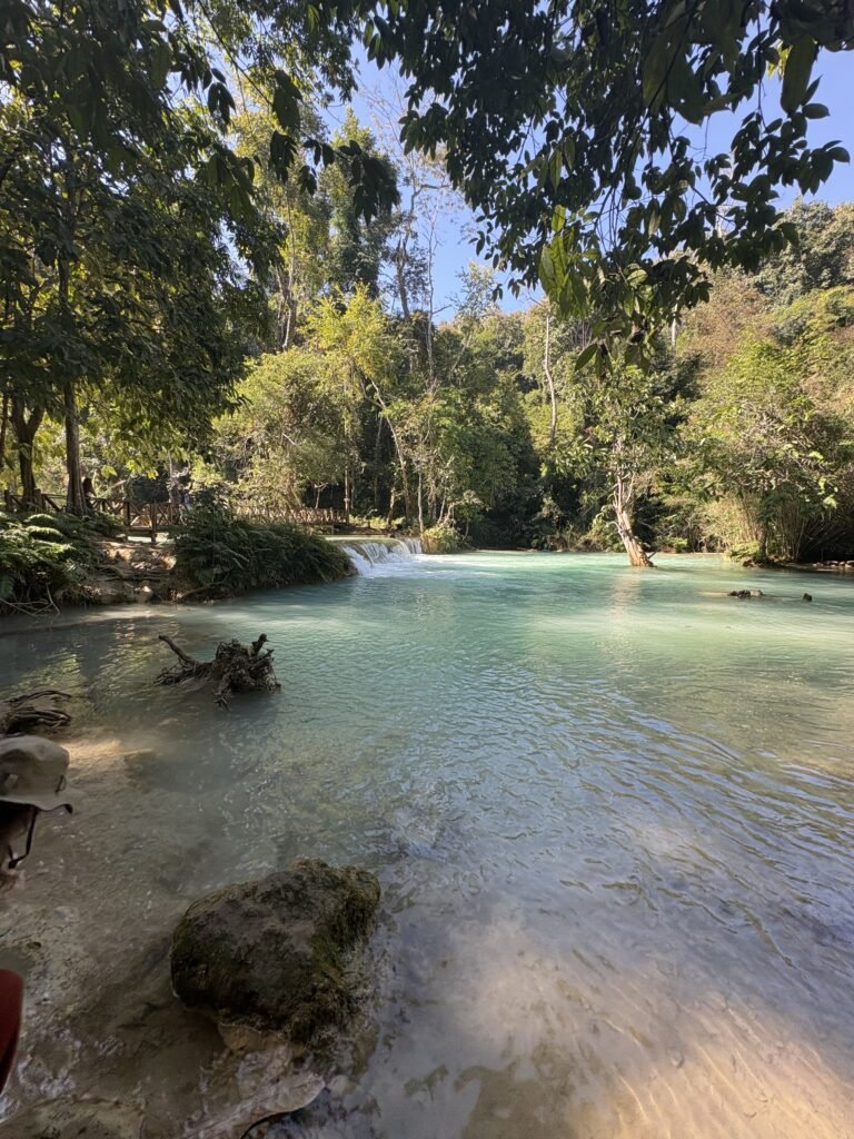 Hay lugares que te sorprenden, otros que te gustan… y después está Kuang Si, que directamente te agarra del cuello y te dice: ‘sentate y mirá lo que es la naturaleza cuando se pone dramática’.