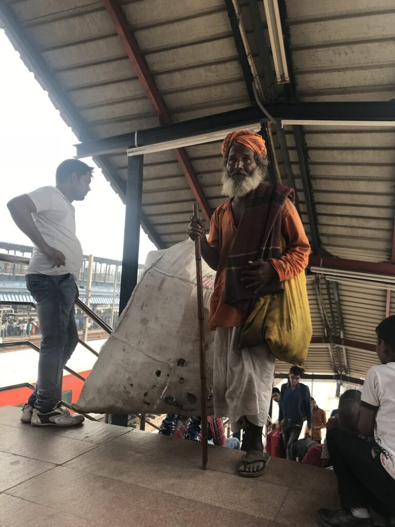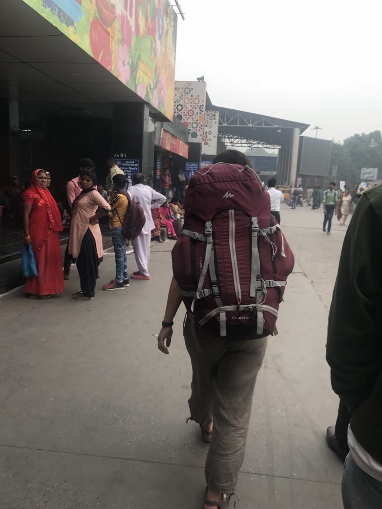 Porque esto no es una simple estación: es un universo paralelo. Apenas llegás, te rodea una sinfonía de bocinas, gritos, vendedores ambulantes, mochileros desorientados, peregrinos, niños corriendo, tuk-tuks que se suben a la vereda… y vacas. Siempre vacas, como si fueran parte del staff.
