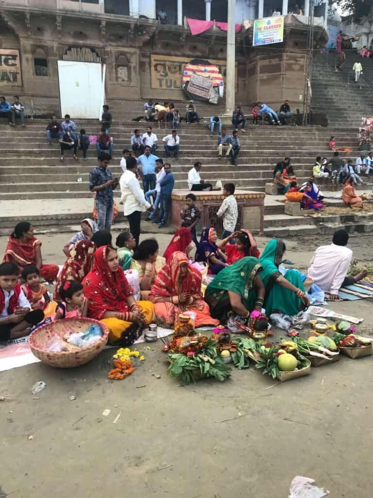Gente sumergiéndose en el río con devoción, tirando flores, prendiendo velas, lavando sus pecados. Algunos se metían con ropa, otros en ropa interior, y algunos… directamente sin nada.