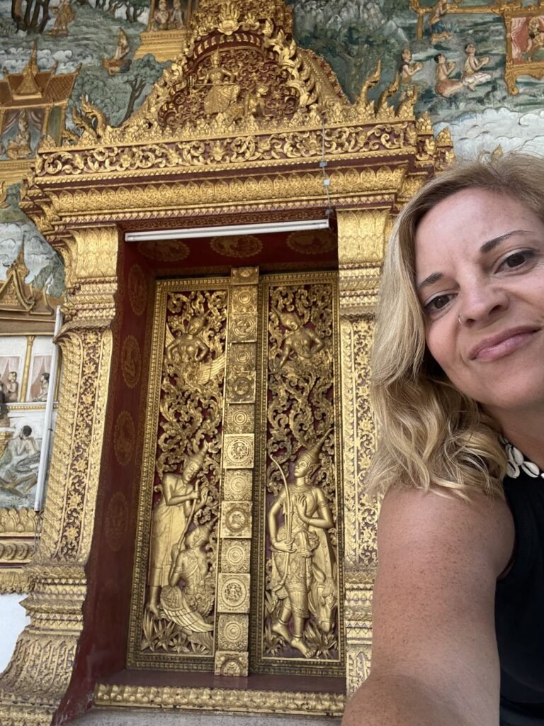 Hoy estaba caminando por Luang Prabang en mi modo favorito: el modo “voy a ver qué encuentro aunque probablemente termine en un lugar que ni sabía que existía”. Y así, sin buscarlo, terminé frente a Wat Aham, un templo que debería venir con advertencia: “prepárese para quedarse mirando una pared durante treinta minutos como si estuviera viendo una serie de Netflix”. Porque la fachada, te juro, no es una fachada: es una novela completa que alguien empapeló en un edificio.